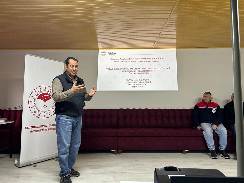 Ziraat Fakültesi Bahçe Bitkileri Bölümü Öğretim Üyesi Prof. Dr. Adem YAĞCI; Orta Karadeniz Geçit Kuşağı Tarımsal Araştırma Enstitüsü’nce (OKTAEM) yürütülen TÜBİTAK 1002 -(Proje no: 225O108) “Tokat İlinde Yenice Bağlarda Görülen Fungal Kökenli Kurmaların Araştırılması” projesi kapsamında, üretici bilgilendirme toplantısına katılmıştır.